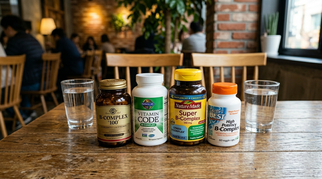 앞서 말씀드린 8가지(B1, B2, B3, B5, B6, B7, B9, B12)가 모두 들어있는지 성분표를 꼭 확인하세요. 하나라도 빠지면 대사 과정에 빈틈이 생길 수 있어요.